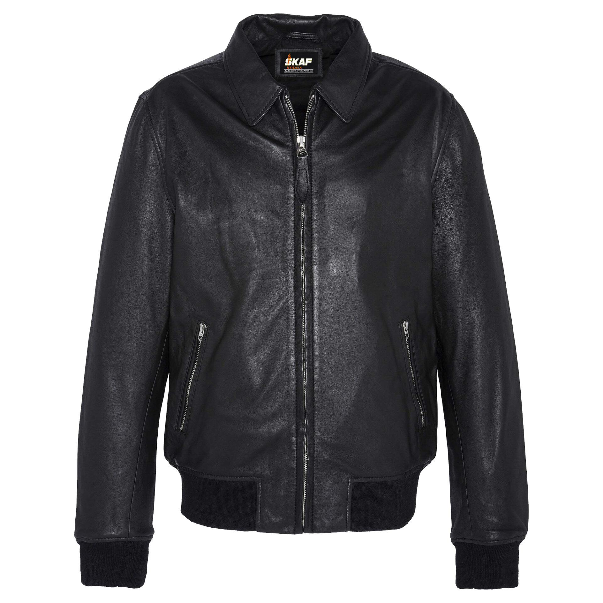 Smooth leather flight jacket, classic and timeless.