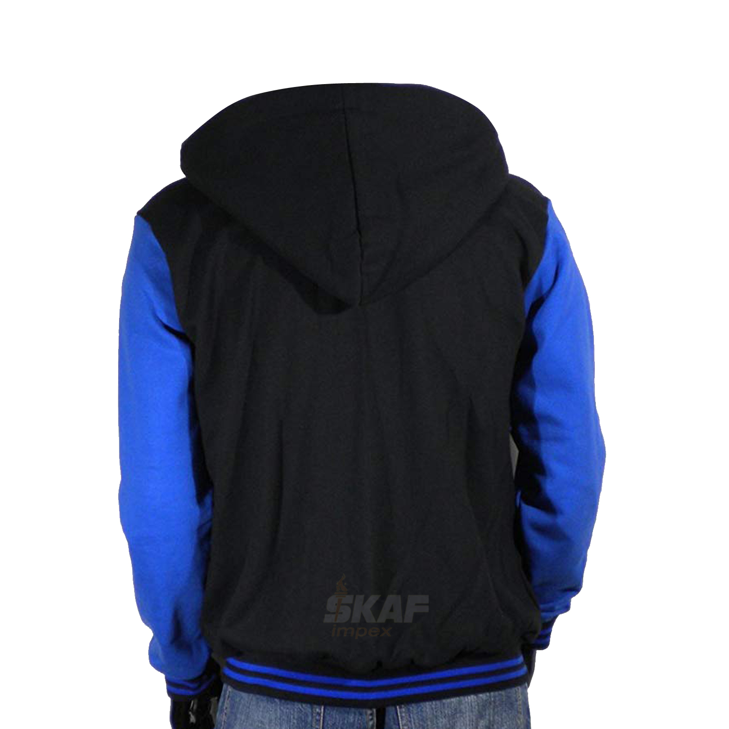 Men Varsity Hoodie Jacket Black Blue