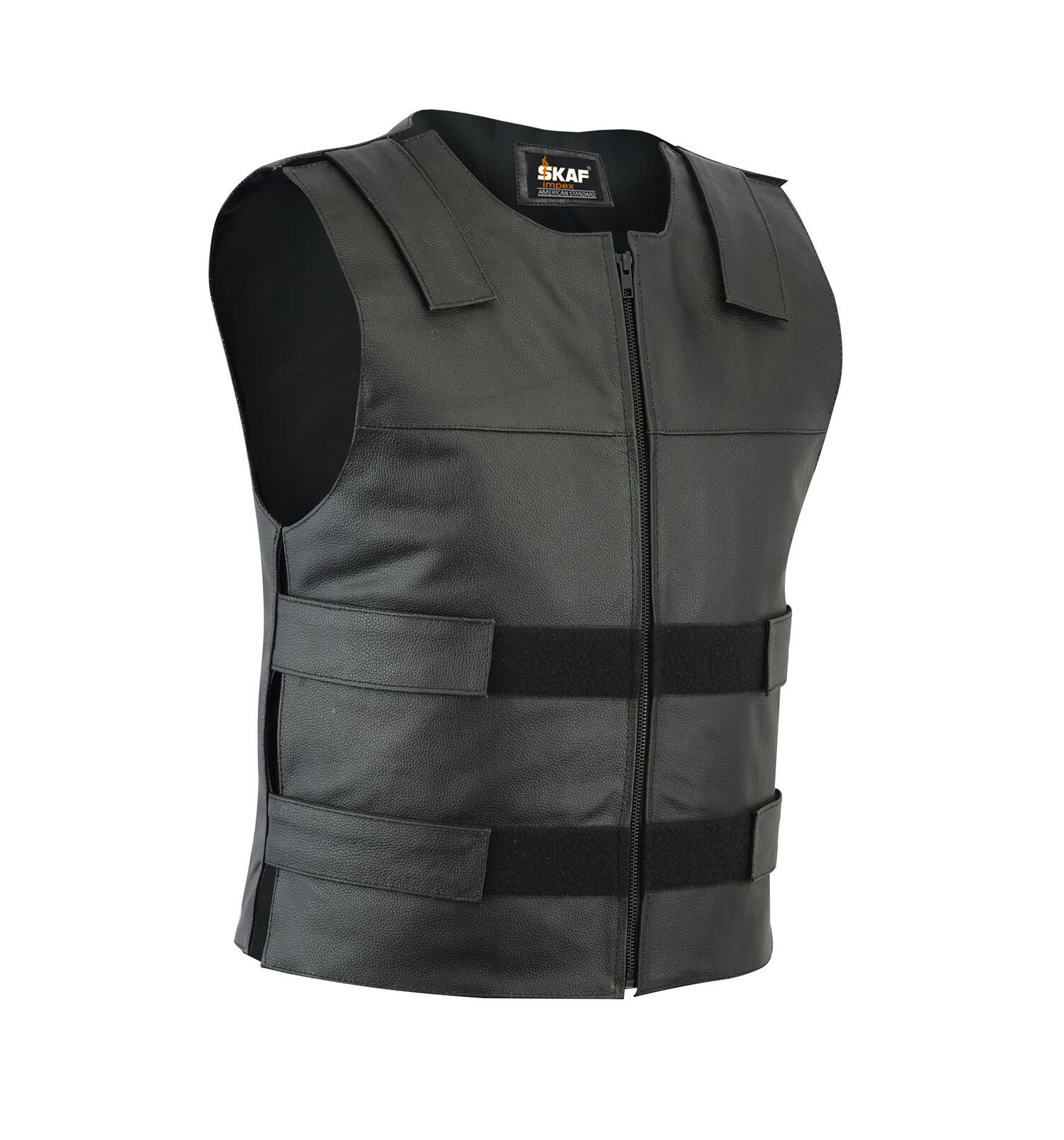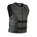 Men’s Bullet Proof style Leather Motorcycle Vest bikers Tactical waistcoat SWAT S1-Black